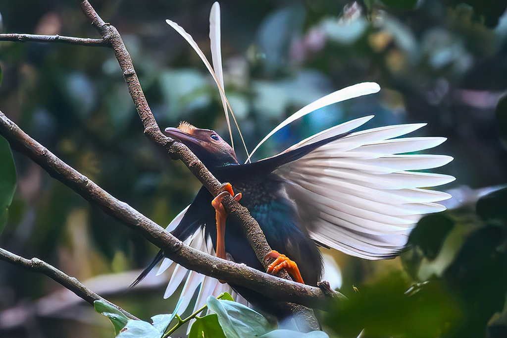 Den Auftakt bildet Halmahera in den Nordmolukken, eine Insel mit hoher Endemismusrate und vergleichsweise geringer touristischer Erschließung. Nach der Anreise über Ternate konzentrieren sich die Beobachtungen auf Tiefland- und Vorgebirgswälder im Raum Sidangoli, Subaim und Foli. Ein klarer Schwerpunkt liegt auf der gezielten Suche nach Pittas und Paradiesvögeln, darunter die Nordmolukken-Blaubrustpitta (North Moluccan Pitta) sowie die Weißbrustpitta (Ivory-breasted Pitta). Besondere Bedeutung kommt den traditionellen Balzplätzen der Wallace’s Standardwing bei Foli zu, die zu den spektakulärsten Beobachtungszielen der gesamten Reise zählen. Ergänzt wird das Artenspektrum durch eine Vielzahl molukkischer Endemiten, insbesondere Fruchttauben, Eisvögel und Monarchen.