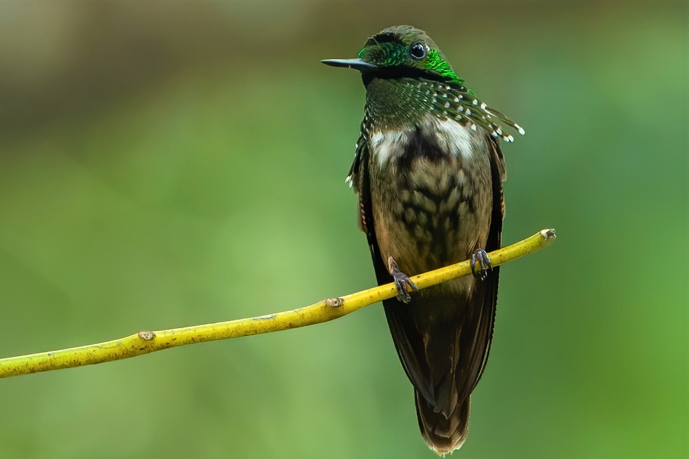 Nach dem Frühstück haben wir nochmals Gelegenheit, uns den fotogenen Scharlachsichlern (Scarlet Ibis) zu widmen. Vielleicht ergibt sich auch ein kurzer Abstecher zu einer Futterstelle, an der wir mit etwas Glück die seltene, nur in Brasilien vorkommende Schwarzmanteltangare (Black-backed Tanager) fotografieren können. Danach fahren wir weiter in Richtung Süden bis ins Vale do Ribeira im Bundesstaat São Paulo und erreichen unsere Unterkunft bei Eldorado am späten Nachmittag. Noch vor dem Abendessen bietet sich uns bereits ein erster Höhepunkt: Im wunderschön angelegten Kolibri-Garten unserer Lodge können wir uns der Fotografie verschiedener Kolibriarten widmen, etwa dem Schwarzkolibri (Black Jacobin), Weißkinn-Saphirkolibri (White-chinned Sapphire), Glitzerkehlamazilie (Glittering-throated Emerald) oder mit etwas Glück der bezaubernden Schmetterlingselfe (Festive Coquette). Übernachtung Lodge/VP.